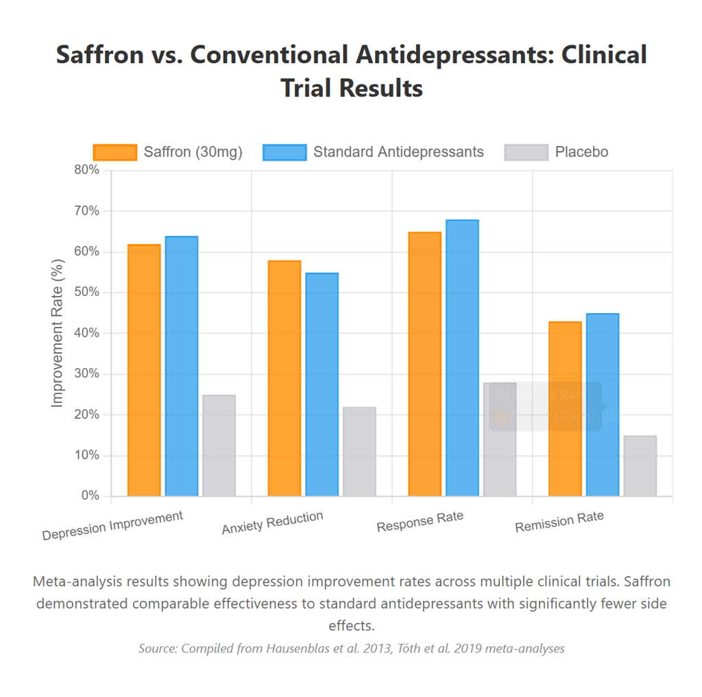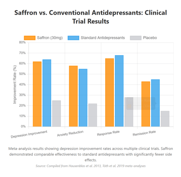 The most exciting part? These aren't isolated results. Study after study confirms saffron's remarkable consistency in improving mental health markers.